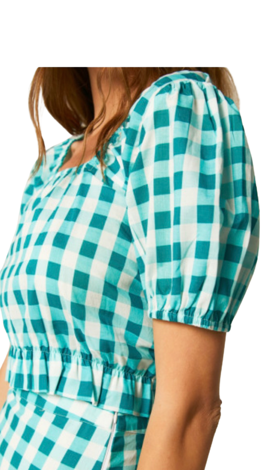 Apparel- Compania Fantastica Blue Gingham Crop Top