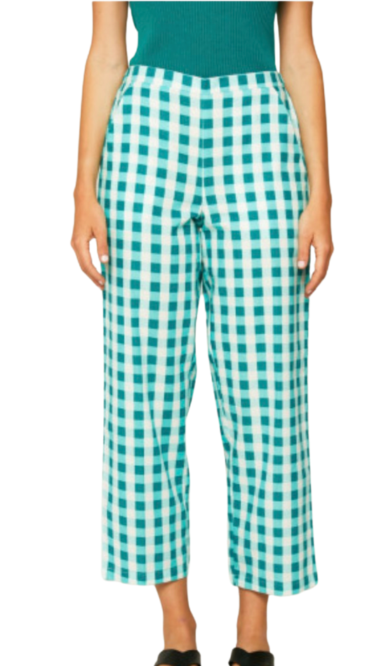 Apparel- Compania Fantastica Blue Gingham Cropped Pants