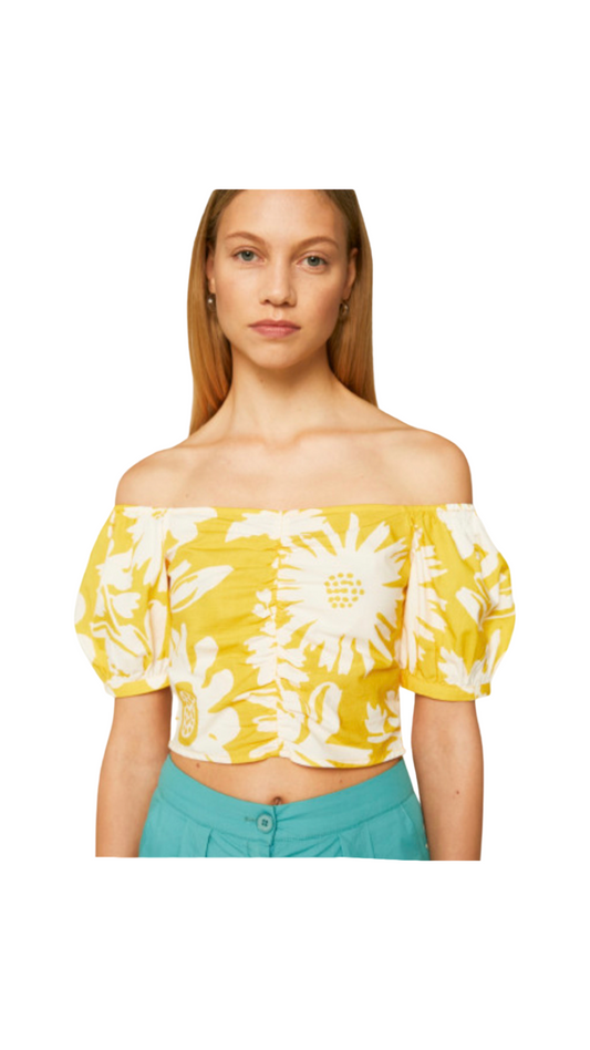 Apparel- Compania Fantastica Yellow and White Crop Top