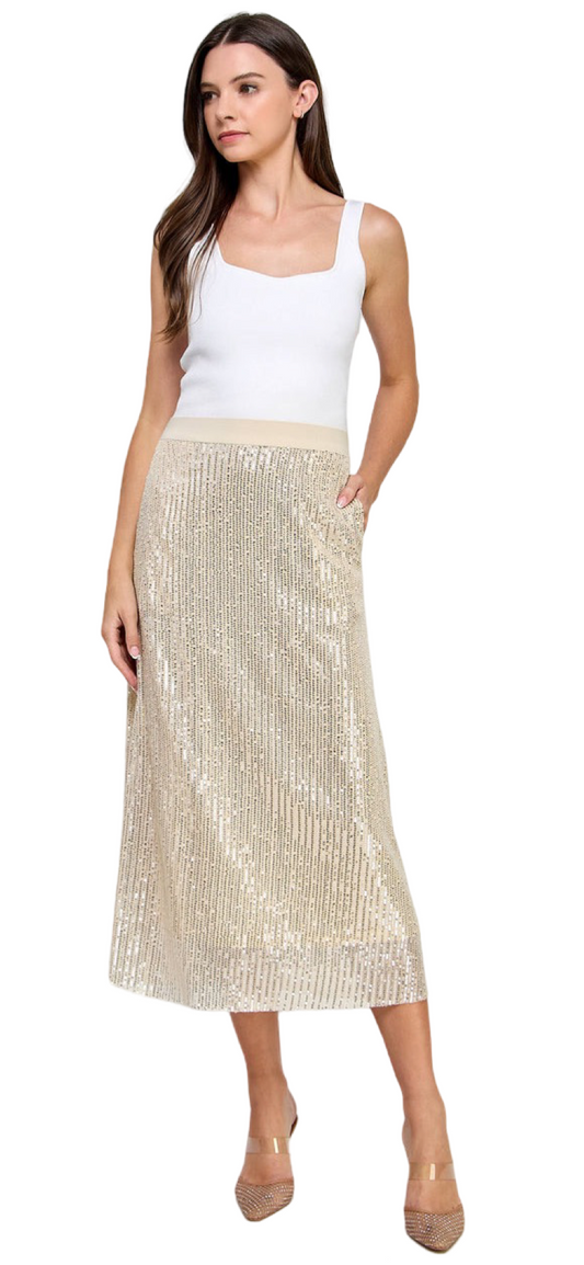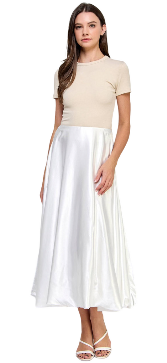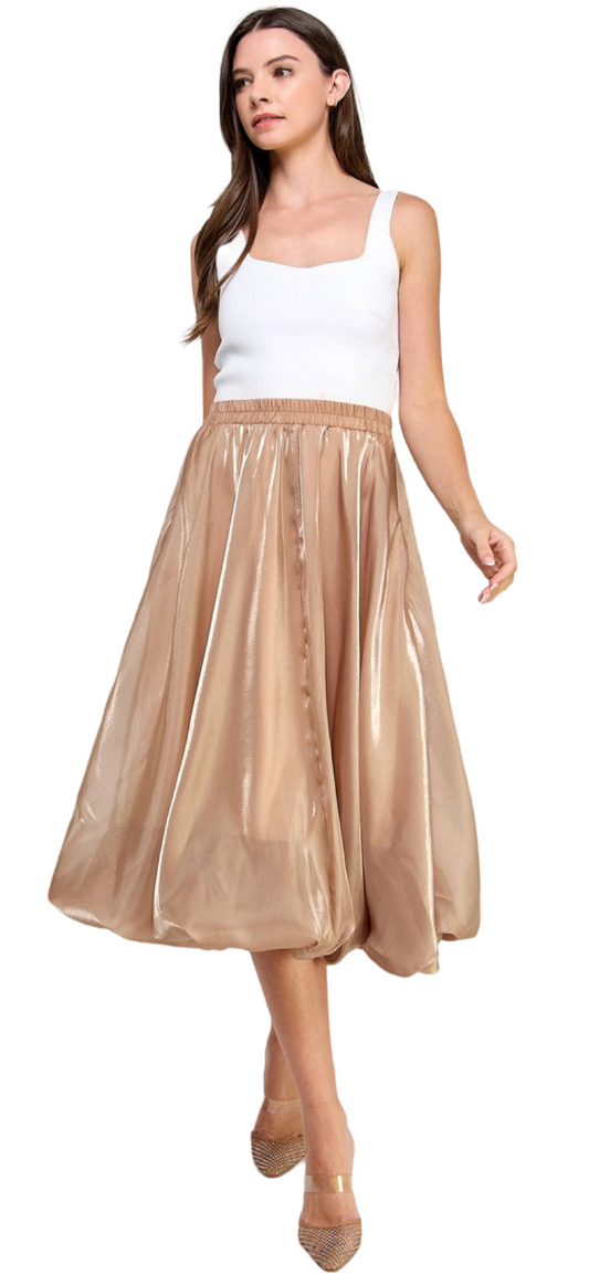 Apparel- Ellison Shiny Bubble Hem Midi Skirt