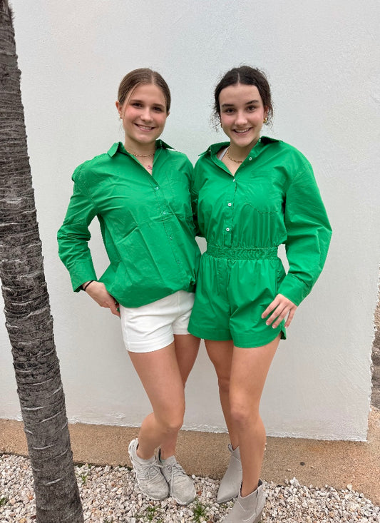 Apparel- Grey Lab Shoulder Pad Shirt Romper