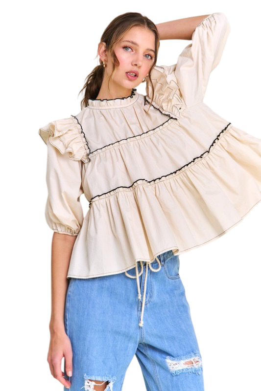 Apparel- In The Beginning Ruffled High Neck Top