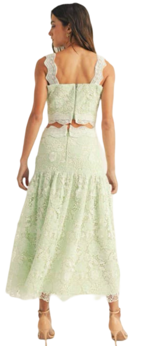 Apparel- Just Me Crochet Lace Ruffle Detail Sleeveless Midi Set