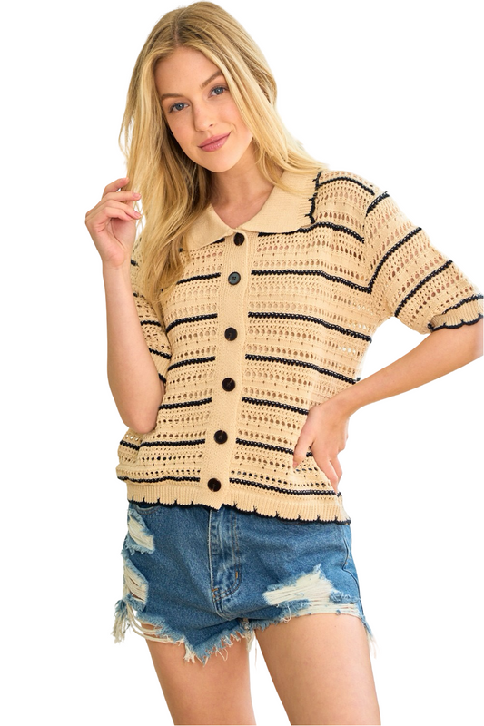 Apparel- Lovely Melody Short Sleeve Striped Summer Sweater