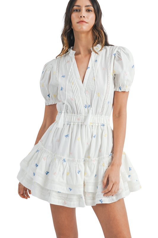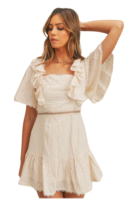 Apparel- Mable Eyelet Lace Mini Ruffle Dress