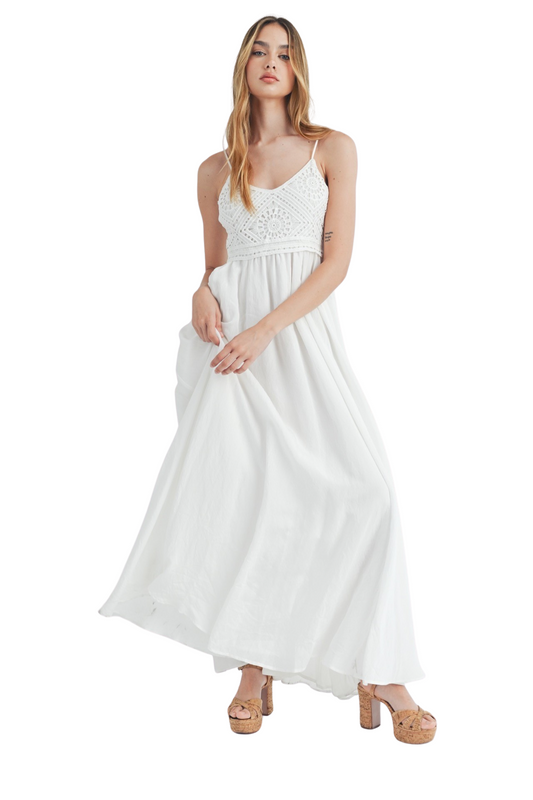 Apparel- Mable Crochet Cami Bodice Maxi Dress