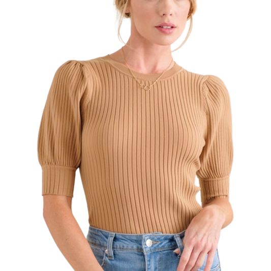 Apparel- And The Why Puff Sleeve Ribbed Basic Bodysuit