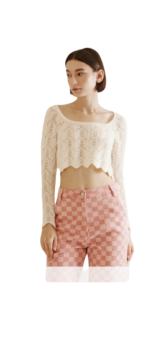 Apparel- Storia Scalloped Detail Cropped Sweater Top