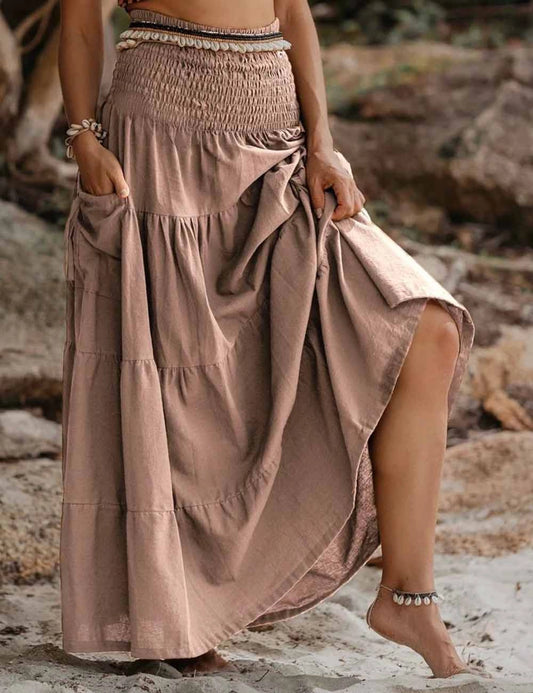Apparel- Sweet Karma Boho Ruched Maxi Skirt