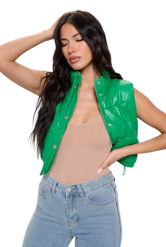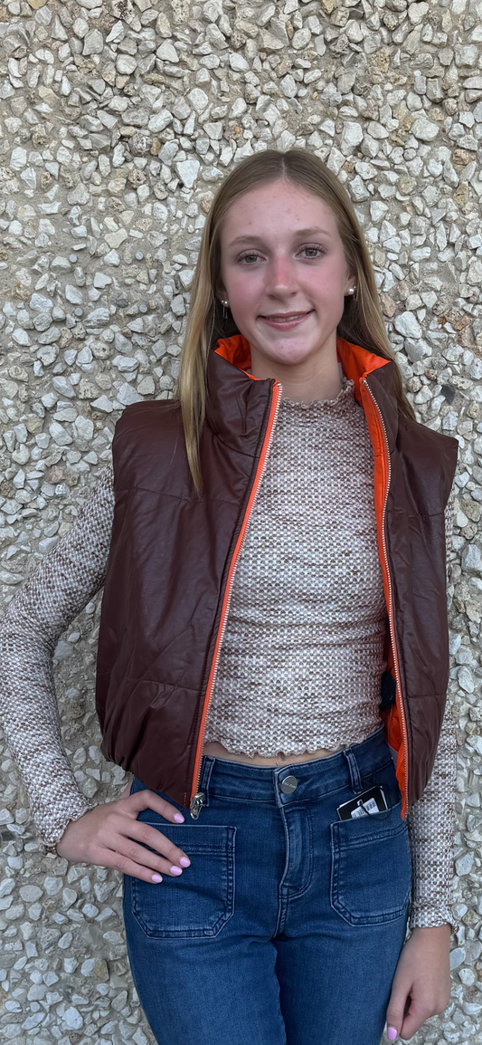 Apparel- B. Coature Reversible Faux Leather Cropped Puffer Vest