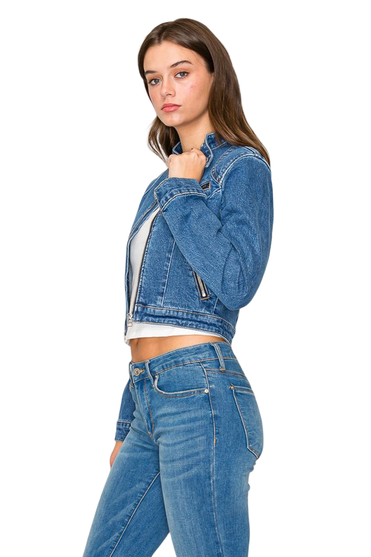 Apparel-Curds & Whey Denim Zip Pocket Biker Jacket