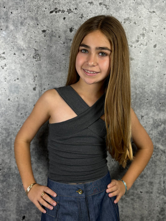 Girls- Erge Solid Slinky Layer Bottom Tank and Short Set