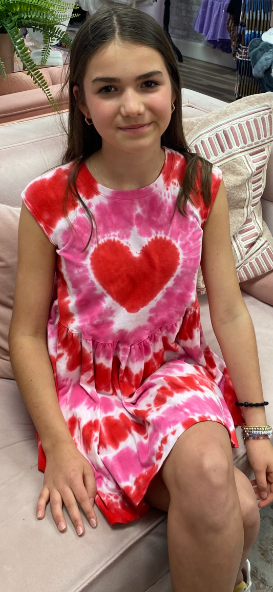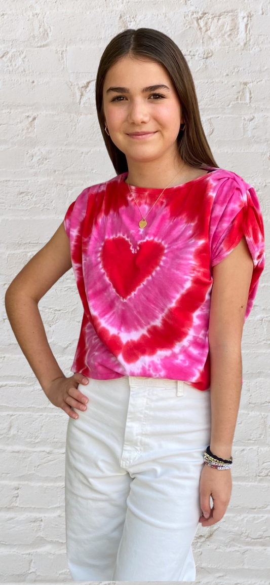 Girls- Erge Ruched Sleeve Tie Dye Heart Top