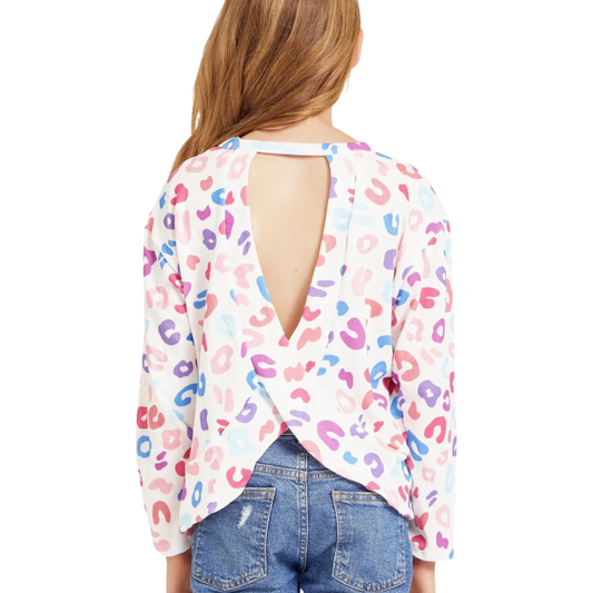 Girls- Good Girls Animal Print Twisted Open Back Sweater