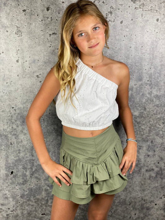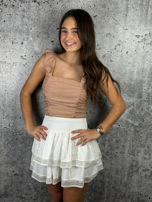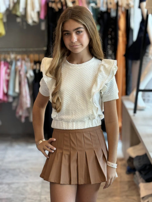 Girls- If So Knit Denim Ruffled Sleeveless Vest