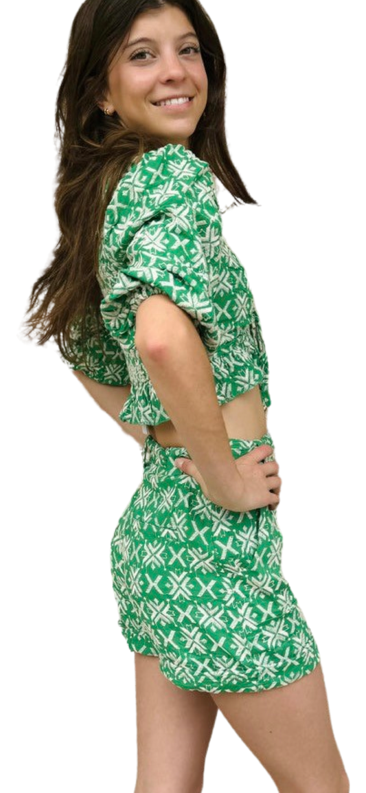 Apparel- Btfl-Life Zandra Printed Lurex Chiffon Shorts