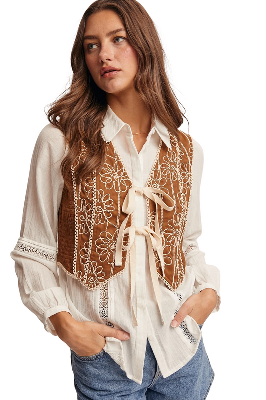 Apparel-Allie Rose Floral Embroidery Sweater Vest Top