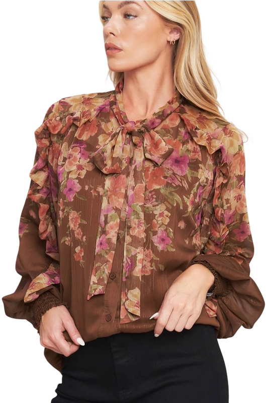 Apparel- Flying Tomato Tie Front Floral Woven Top