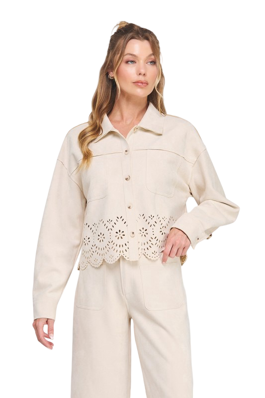 Apparel-Allie Rose Suede Laser Cut Shirt Jacket