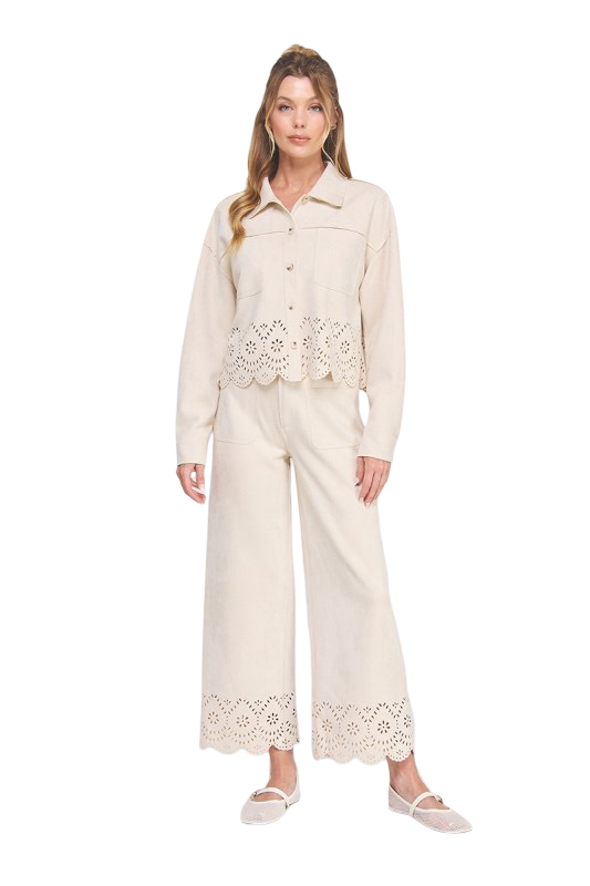 Apparel-Allie Rose Suede Laser Cut Wide Leg Pant