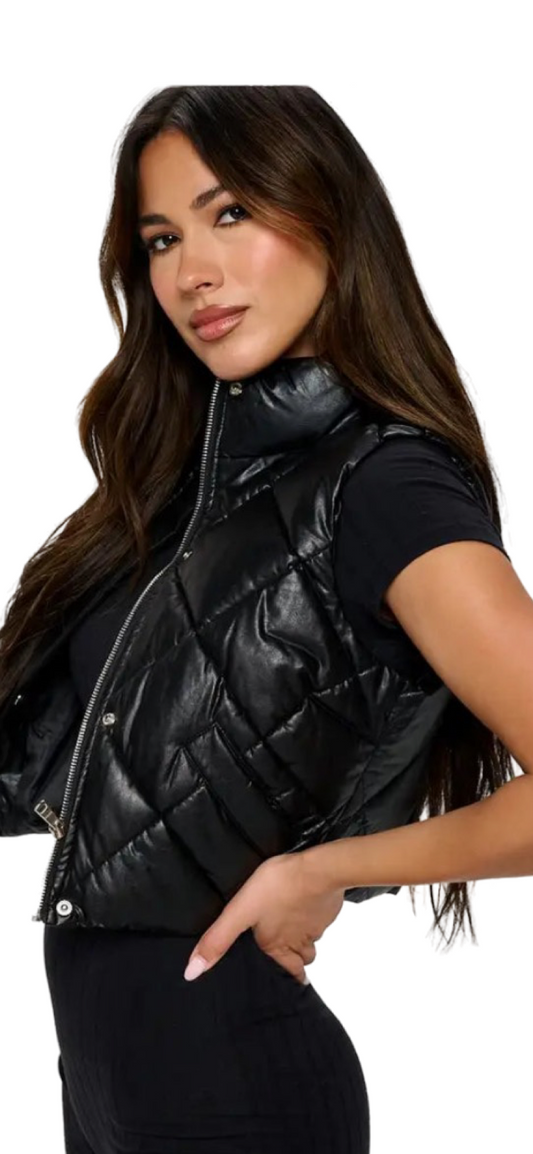 Apparel- B. Coature Reversible Faux Leather Cropped Puffer Vest