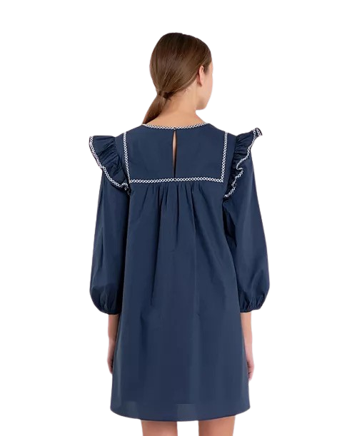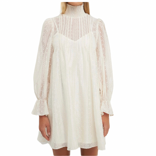 Apparel- English Factory Embroidered Organza Smock Neck Dress