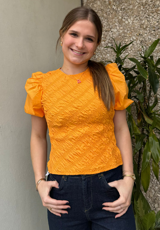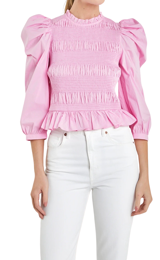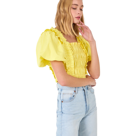 Apparel- Endless Rose Smocked Puffed Sleeve Top
