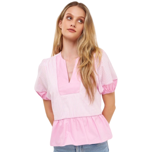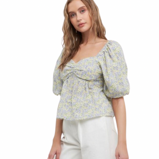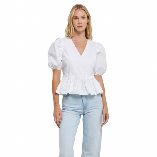 Apparel- English Factory V Neckline Puffed Sleeve Top