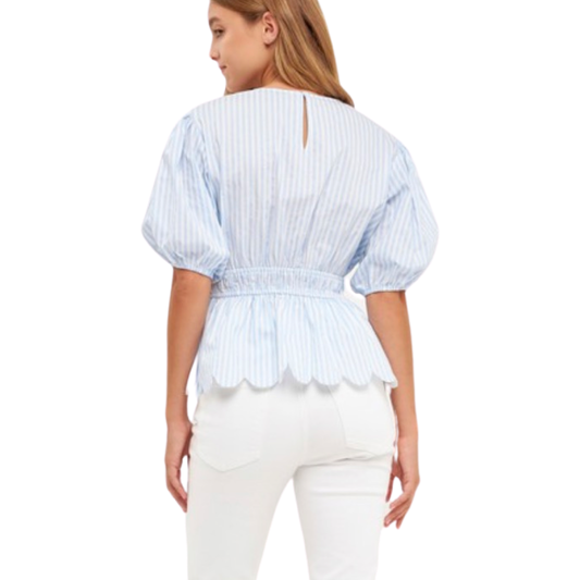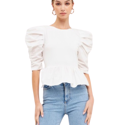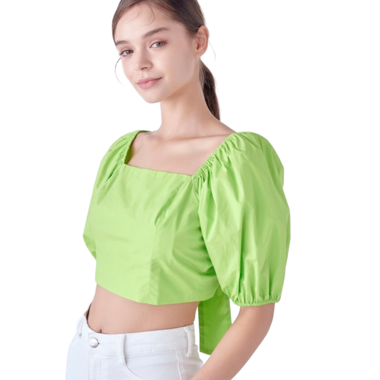 Apparel- English Factory Puffed Sleeve Top With Back Bow