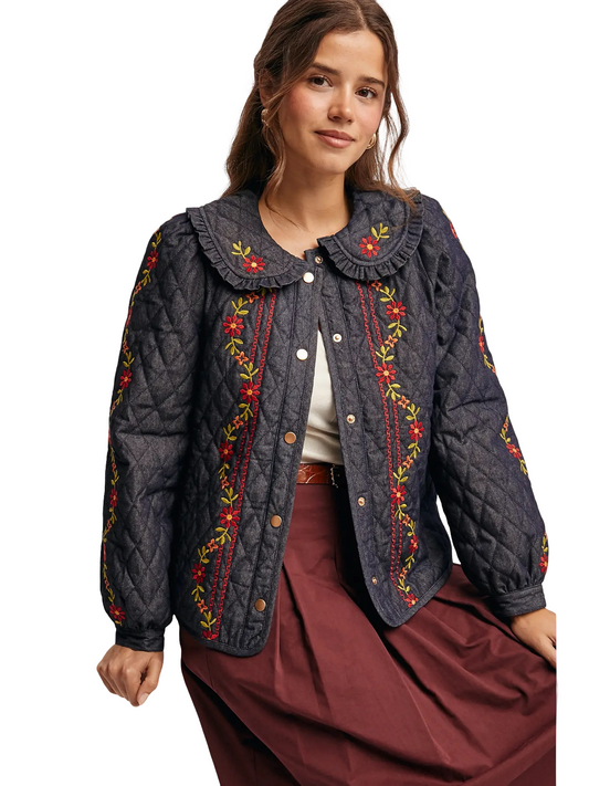 Apparel- Forte Quilted Embroidered Jacket Top