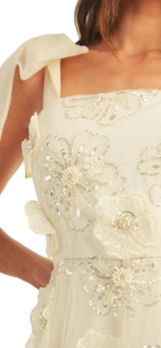 Apparel- Just Me 3D Floral Mesh Shoulder Strap Mini Dress