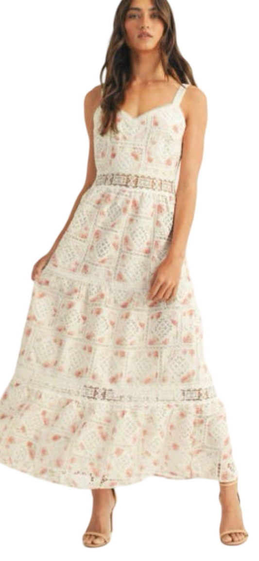 Apparel- Just Me Shoulder Tie Floral Lace Ruffle Detail Maxi Dress
