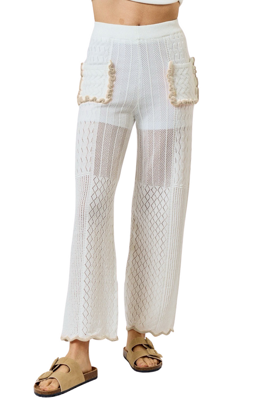 Apparel- LALAVON Crotchet Scallop Ruffle Hem Pants