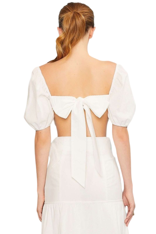 Apparel- Main Strip Elastic Shoulder Bubble Sleeve Crop Top
