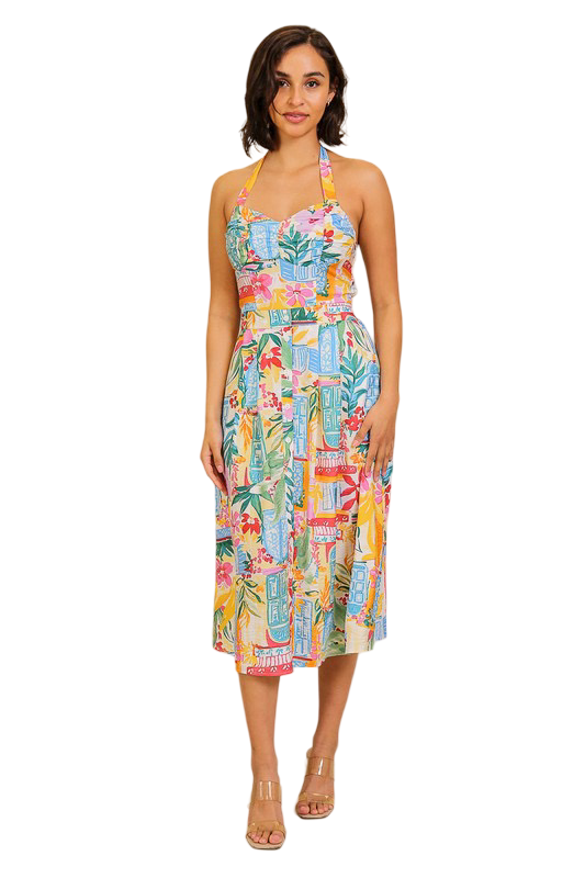 Apparel- Just Me Halter Neck Floral Border Print Midi DressRegular price $ 128.00 USDRegular priceUnit price / per-
