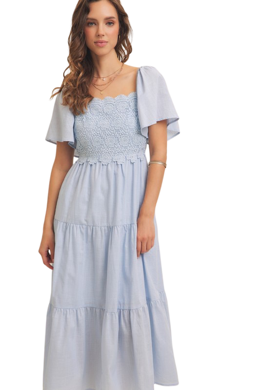 Apparel- In February Tiered Floral Crochet Midi DressRegular price $ 98.00 USDRegular priceUnit price / per-