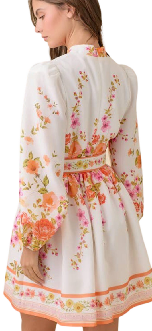 Apparel- Main Strip Mock Neck Floral Border Print Mini Dress