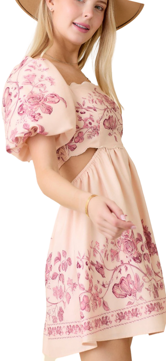 Apparel- Saints and Secrets Puffy Floral Mini Dress