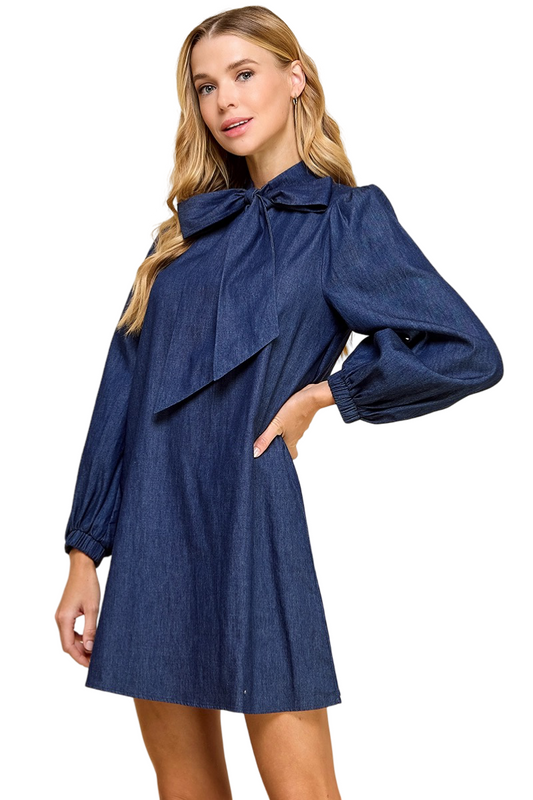 Apparel- TCEC Bow Tie Denim Mini Dress