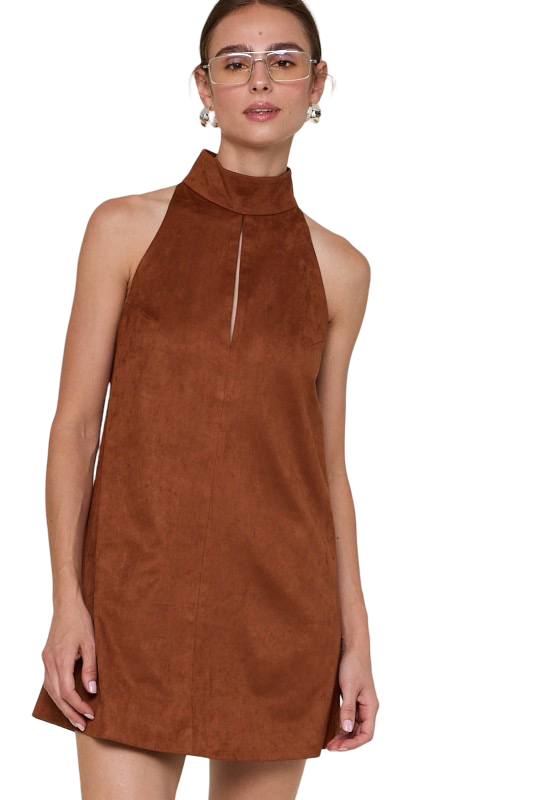 Apparel- Sky to Moon Suede Cut Out Point Plain Mini Dress
