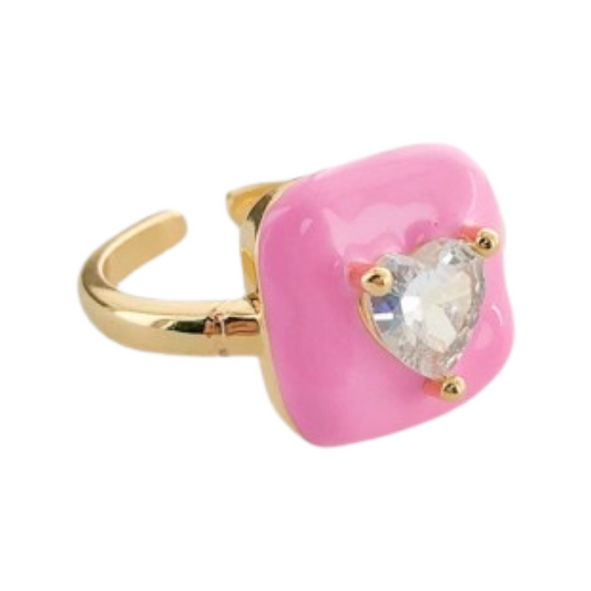 Rings- M&E Bling Heart Rounded Square CZ Enamel Rings