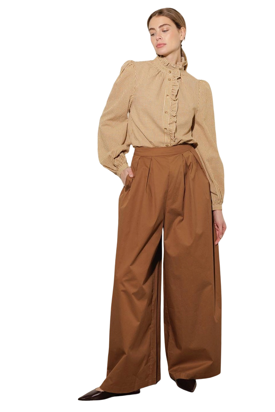 Apparel- Flying Tomato Gingham Ruffle Front Button Down Top