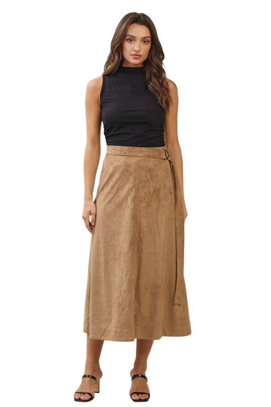 Apparel- Able Belted A Line Vegan Suede Midi Skirt