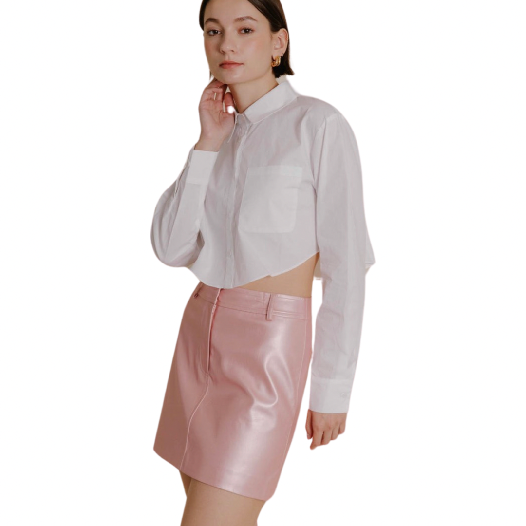 This Aureum Vegan Leather Mini Skirt is a fashionista's perfect match! Sophisticated and sleek, it pairs perfectly with the matching blazer for a sartorial look that'll turn heads. So why not add some kick to your wardrobe? Rock it with confidence!