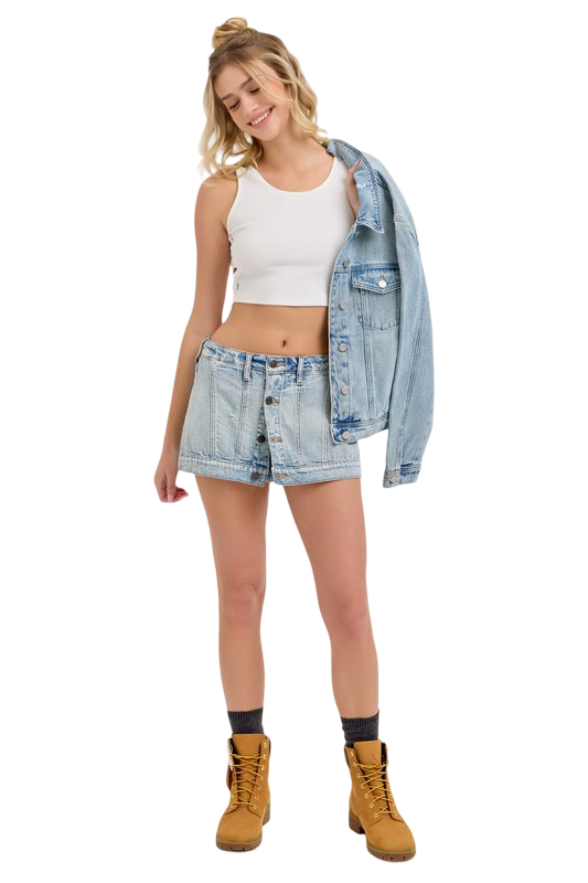 "Get the best of both worlds with the Cello Button Front Mini Skirt Skort! With its unique design featuring a button front skirt and shorts in the back, you'll be turning heads everywhere you go. Stay stylish and comfortable in this playful piece."seriously.