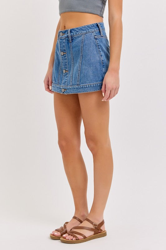 Apparel- Cello Button Front Mini Skirt Skort