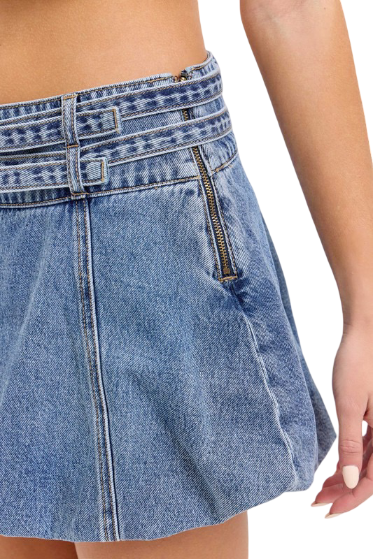 Apparel- Cello Mid Waisted Bubble Mini Skirt with Belts