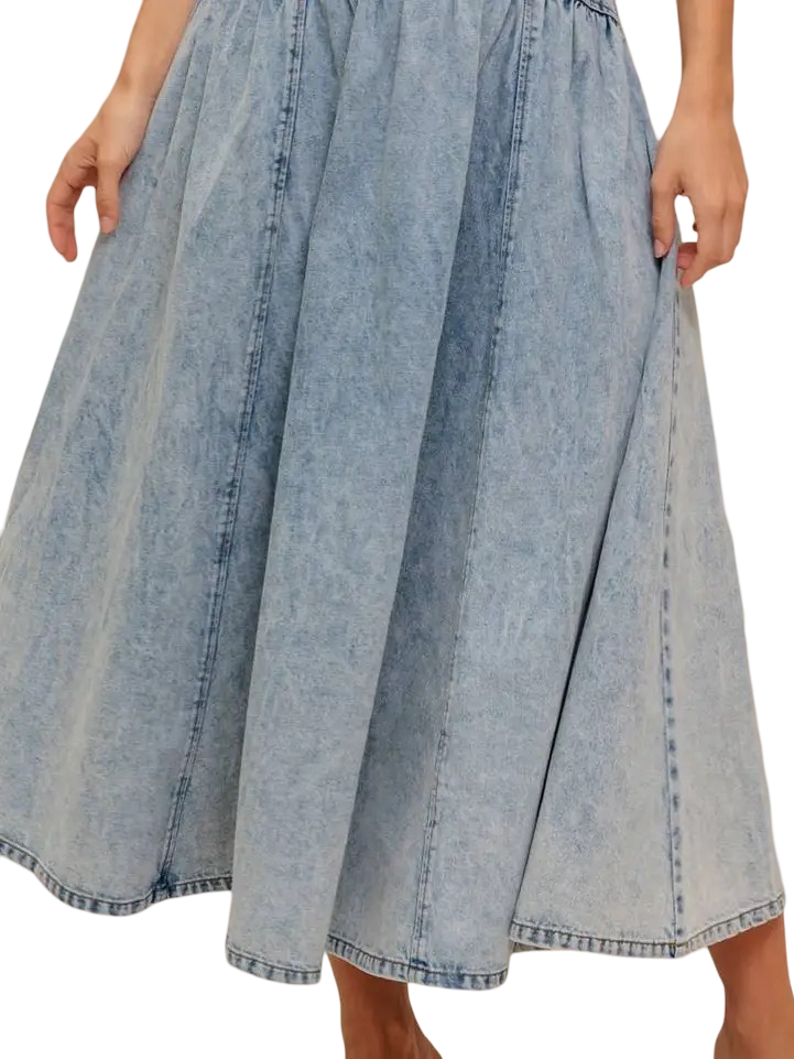 Indulge in the elegance of our Flying Tomato Acid Washed Midi Skirt. Made from lightweight material, this cute midi skirt is the perfect addition to your wardrobe. Its acid washed design adds a touch of sophistication to any look. Elevate your style with this exclusive piece.