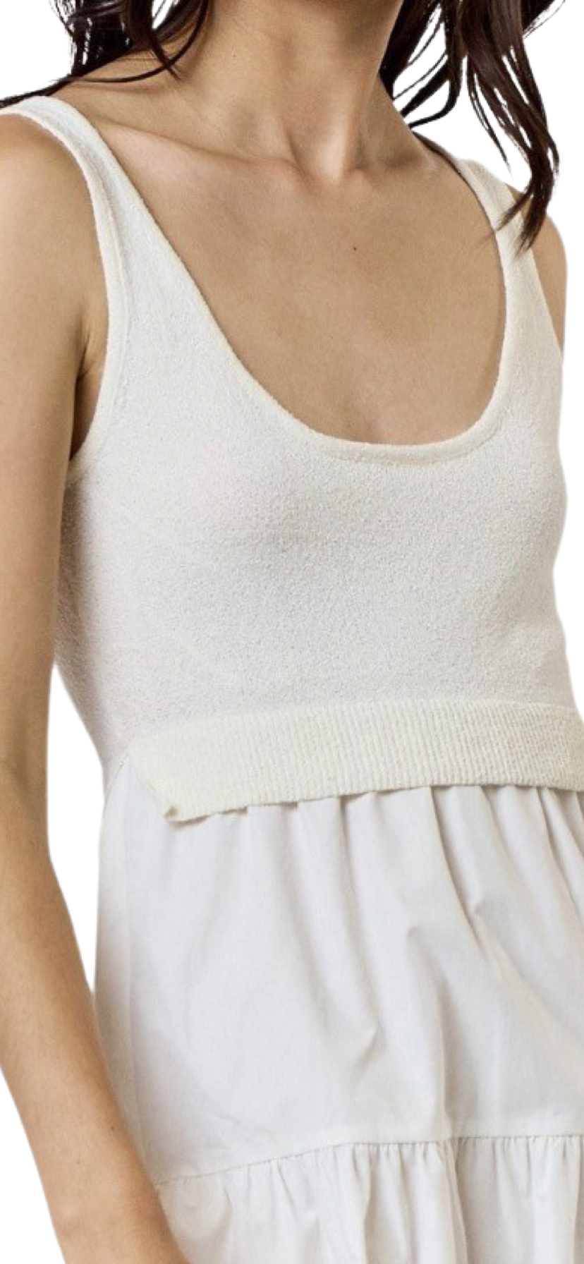 Apparel- LALAVON Sweater Contrast Scoop Neck Tiered Midi Dress
