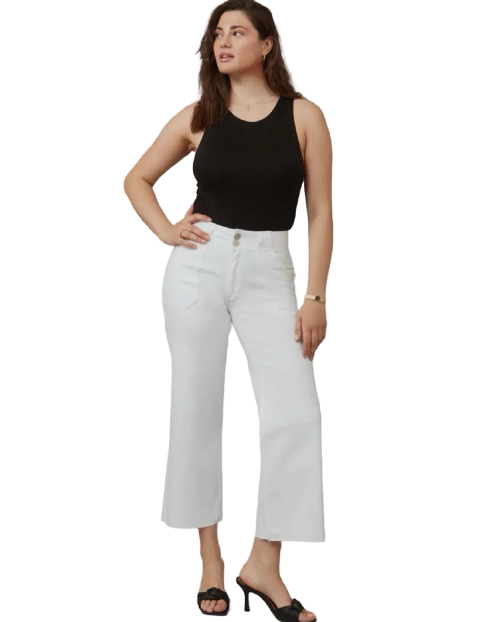 Introducing the Lola COLETTE High Rise Wide Leg Jeans! These perfect white jeans are a must-have for any fashion lover. With their high rise and wide leg, they provide both comfort and style. Say goodbye to plain old jeans and hello to the perfect white jean!